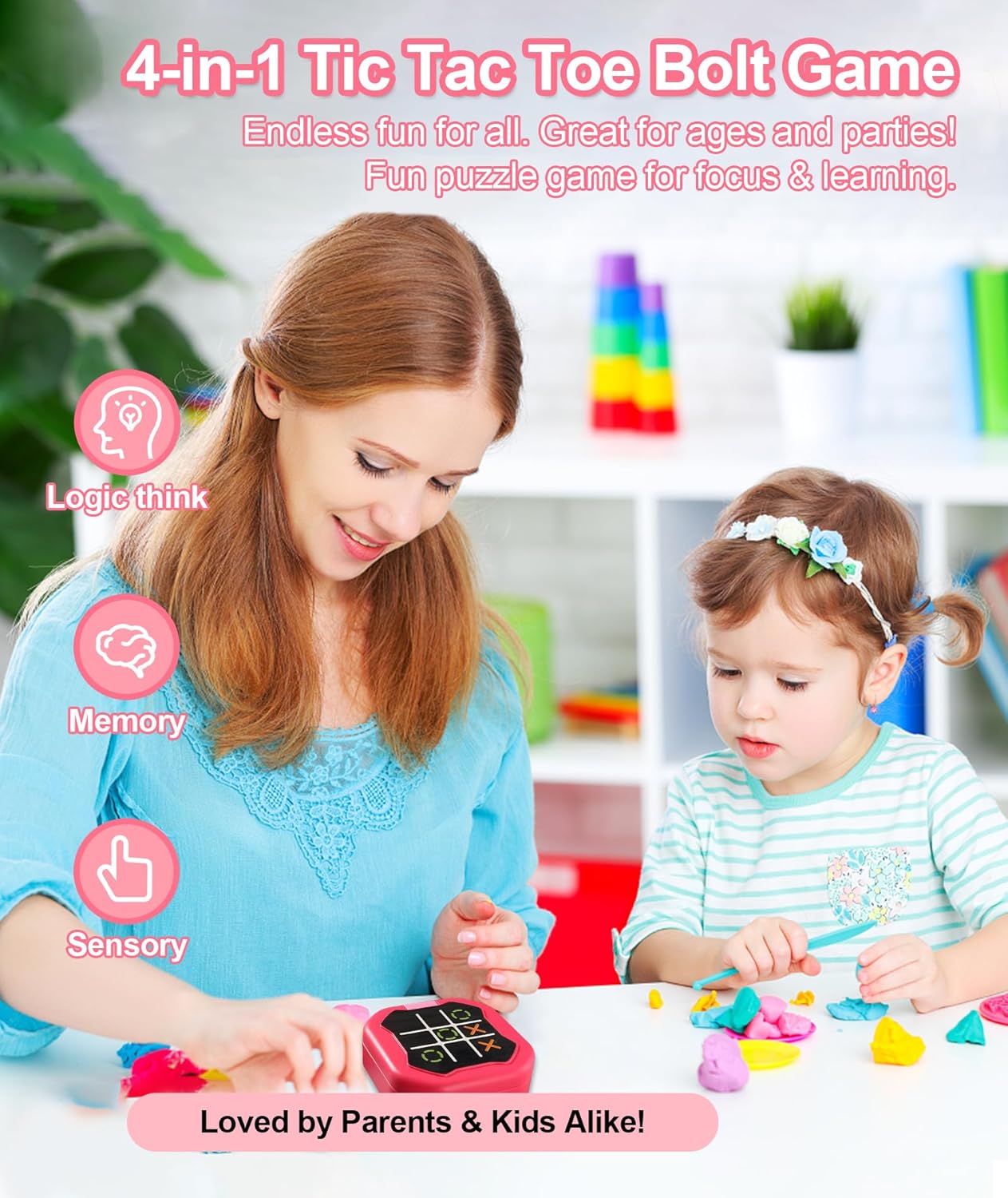 Electronic Tic Tac Toe Game for Kids, 3-in-1 Handheld Puzzle Toy, Portable Travel Entertainment for Family and Educational Fun, Compact Size 7.5x7.5x2.5cm