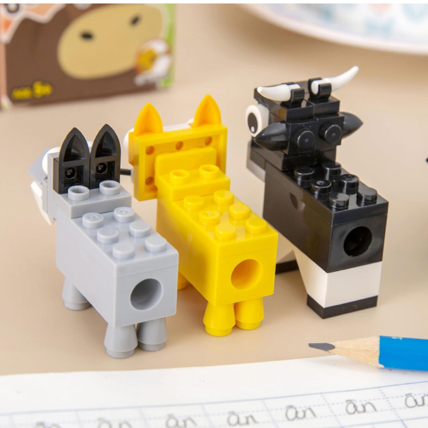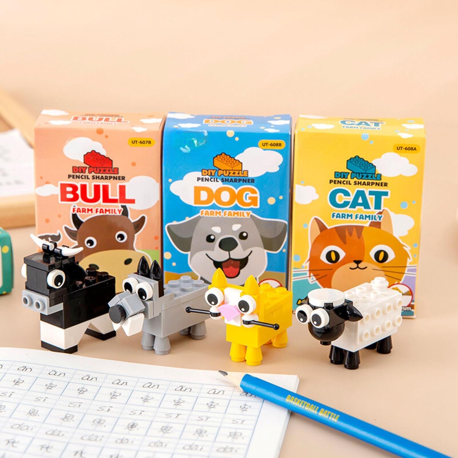 DIY Puzzle Pencil Sharpeners 1 Pieces Stationery Puzzle in Bricks Characters Blocks Assemble DIY for Kids Boys and Girls Return Gift for Birthday 5+ Years | Random Animal