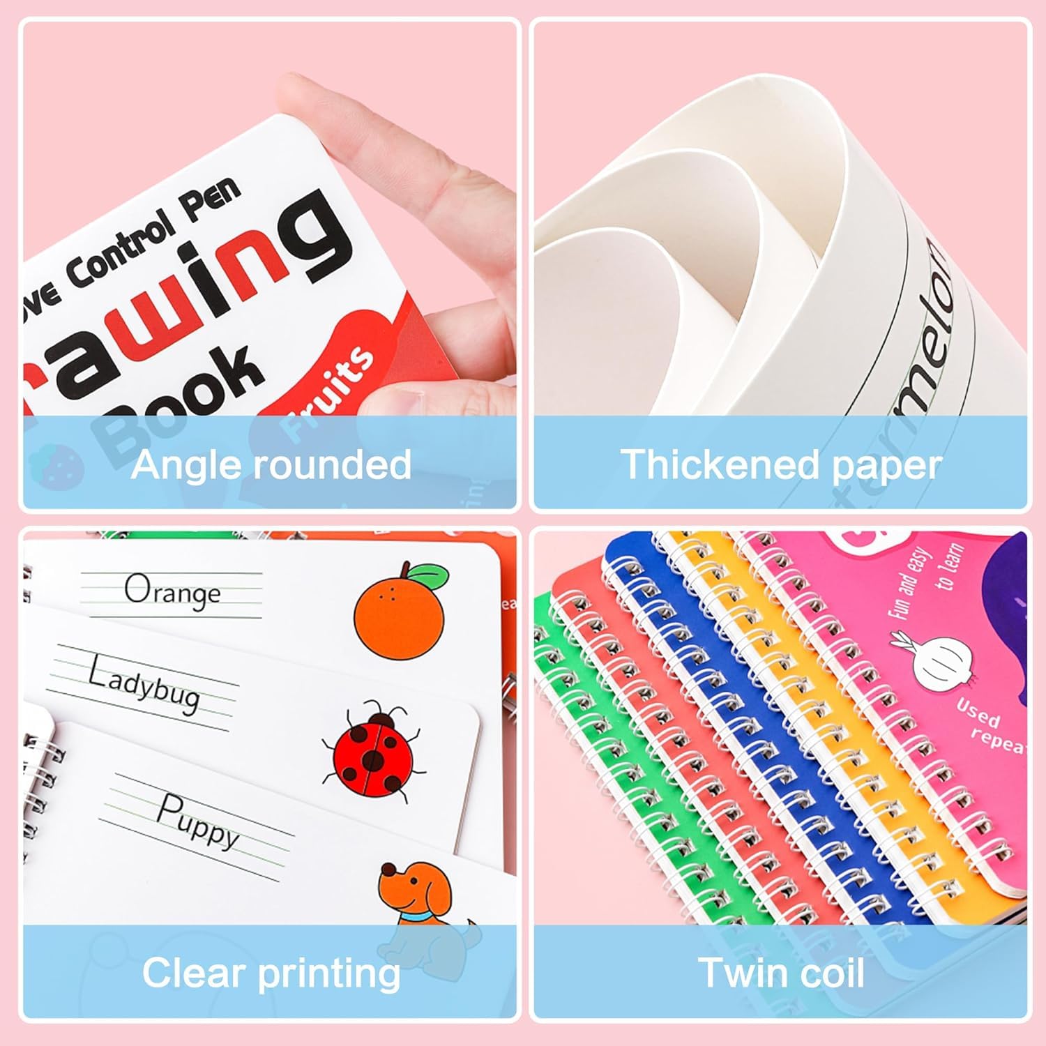 4Pc Magic Drawing Book for Kids Reusable Art Craft Practice Workbook for Toddlers 3-12 Years with 4 Refills Trace Drawing Book for Boys Girls Birthday Gift (Assorted Patterns)