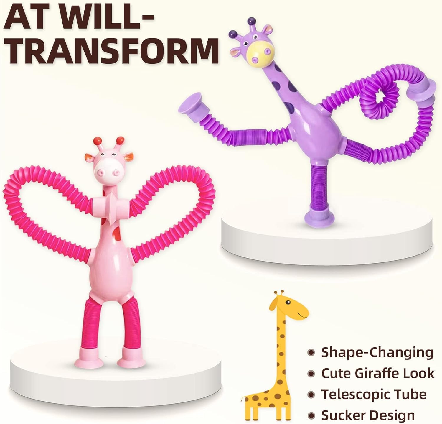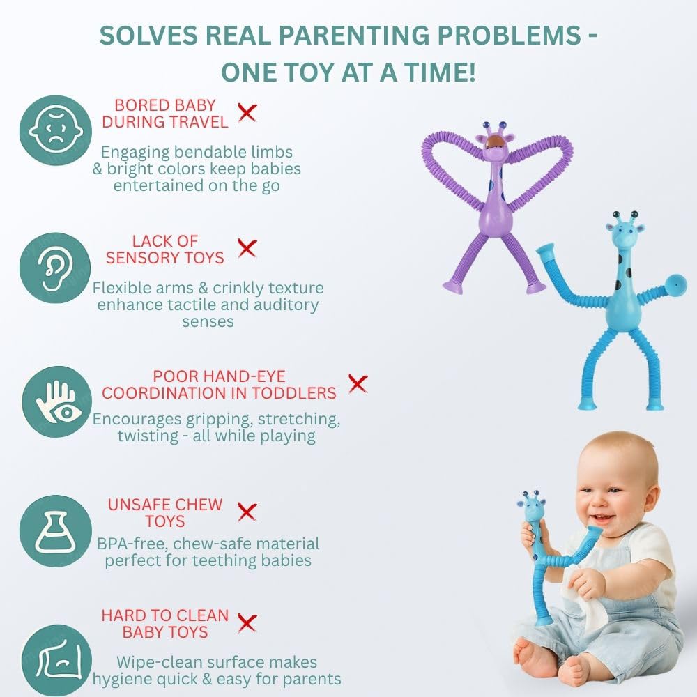 Telescopic Suction Toys for Toddlers – Stretchy Travel Toys for Kids – Giraffe Shaped Fidget Set for Flights & Road – Multicolor,