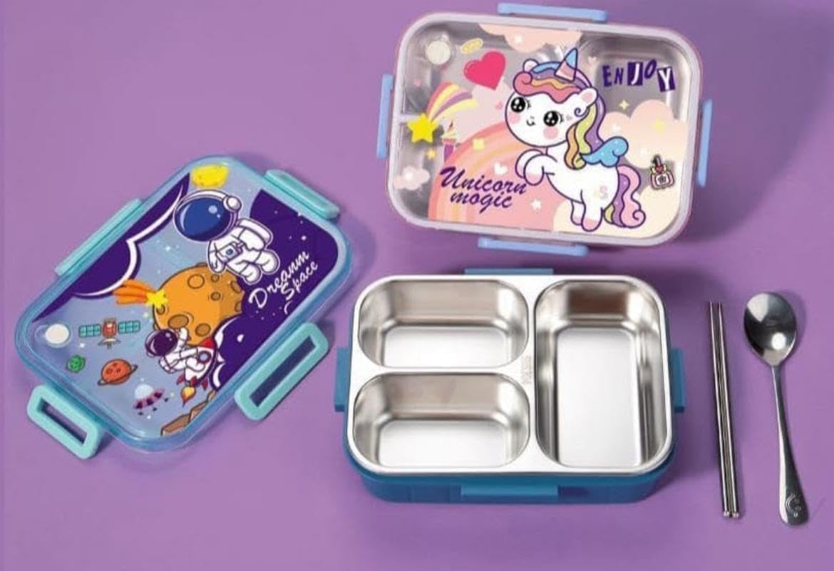 Lunch Box || Stainless Steel Lunch Box || Unicorn Theme || Astronaut Theme Tiffin Box for Boys & Girls -750ML - Multi design