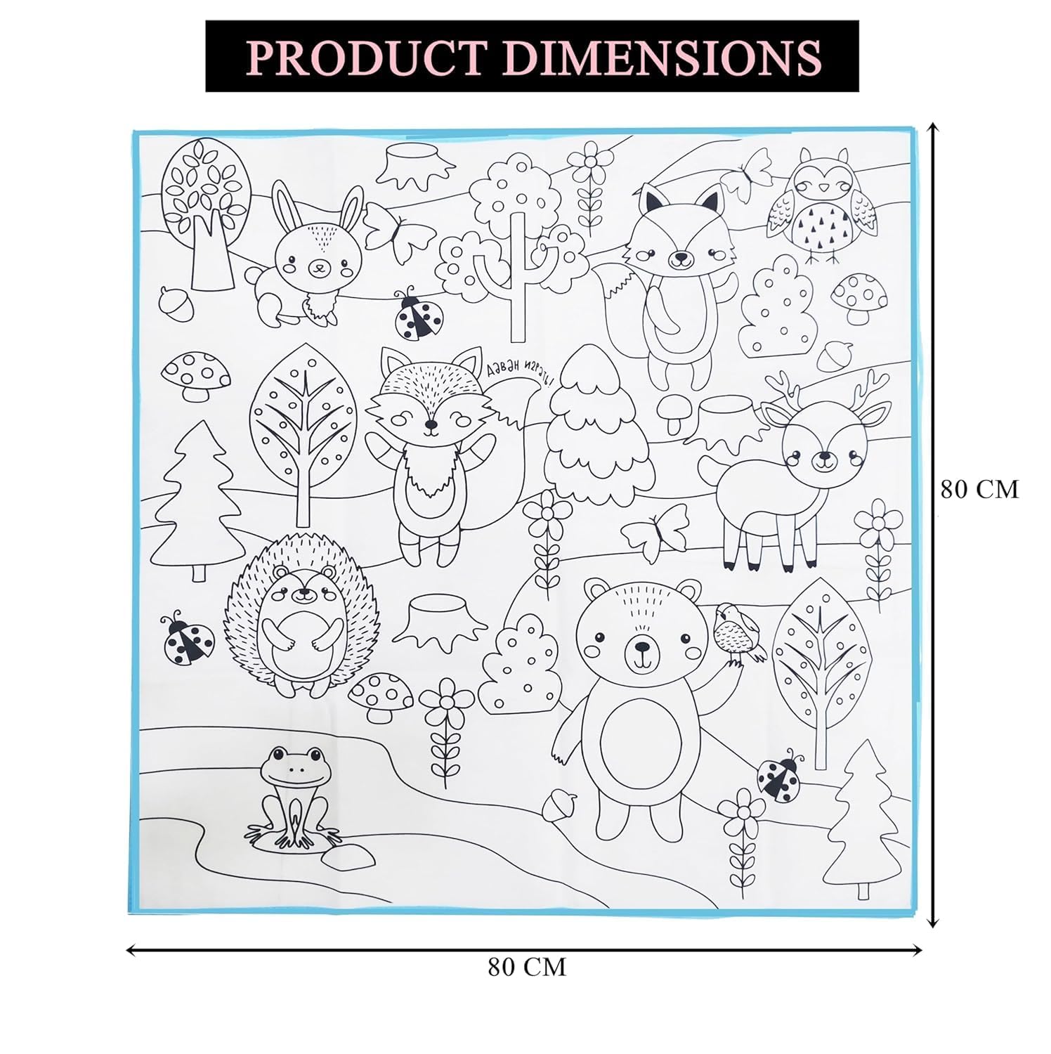 Drawing Washable Mat for Children, Kids Drawing Mat Coloring Roll for Kids Children's DIY Cut Paste Painting Mat with 6 Sketch, Reusable 80x80Cm-1Pc