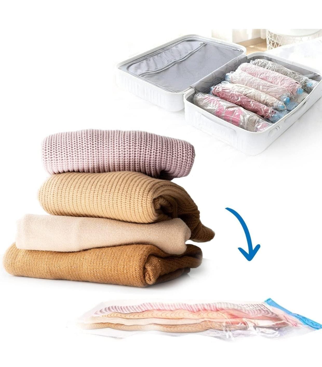 Space Saver Reusable Vacuum Storage Ziplock Compression Sealer Bags for Travel clothes and home Blankets, Quilts with hand Pump - (Standard Pack of 5 (2 Small + 2 Medium + 1 Large, Plastic)